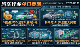 1. 特斯拉 HW3 的“最后通牒”:NHTSA 数据已上交,监管风暴一触即发 继昨日(3 月 9 日)特斯拉提交 FSD 核心撞击数据包后,今日 NHTSA 内部消息称,该机构正加速评估特斯拉奥斯汀…